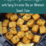 Crispy and flavorful Air Fryer Salmon Nuggets coated in seasoned breading and served with a spicy sriracha mayo dipping sauce. These bite-sized salmon pieces are easy to prepare, air-fried to perfection, and make a perfect snack or appetizer.