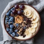This smoothie bowl is best enjoyed fresh for optimal flavor and texture. If needed, store leftovers in an airtight container in the refrigerator for up to 24 hours. Stir gently before eating, though the texture may be less smooth after refrigeration.