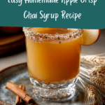 A comforting Apple Crisp Chai Syrup that combines warm chai spices with sweet apple juice and brown sugar, perfect for drizzling over desserts, pancakes, or stirring into beverages for a cozy, spiced flavor.