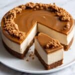 A rich and creamy Biscoff Cheesecake featuring a crunchy Biscoff cookie crust and luscious Biscoff cookie butter integrated into the smooth cream cheese filling. This no-bake style cheesecake is baked in a water bath for a silky texture, topped with melted Biscoff spread and garnished with crushed Biscoff cookies for extra crunch and flavor.