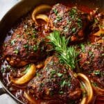Braised Catalina Chicken is a flavorful dish featuring tender bone-in, skin-on chicken thighs simmered in a tangy and sweet Catalina sauce made from ketchup, apple cider vinegar, honey, and a blend of spices. The chicken is first seared to achieve a golden, crispy skin, then slow-baked in the sauce until perfectly braised and caramelized, making it an ideal comforting dinner option.