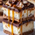 Keywords: Butterfinger cheesecake bars, caramel cheesecake bars, Butterfinger dessert, caramel cheesecake, candy bar cheesecake, easy cheesecake bars, no crust fall cheesecake