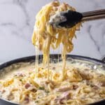- Step 8: Serve hot, optionally garnished with extra Parmesan, black pepper, and crispy bacon. A drizzle of olive oil before serving adds extra flavor and shine.
