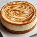 This Caramel Swirl Cheesecake features a creamy, smooth cream cheese filling enhanced with rich caramel swirls atop a buttery graham cracker crust. Baked to perfection and chilled overnight, it offers an indulgent dessert with a luscious balance of sweet caramel and tangy cream cheese, ideal for special occasions or satisfying sweet cravings.