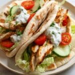 PrintChicken Pitas with Tzatziki and Fresh Veggies Recipe