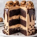 Keywords: Cookie Dough Cake, Layer Cake, Chocolate Ganache, Cookie Dough Frosting, Dessert, Celebration Cake