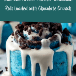 Cookie Monster Cinnamon Rolls are soft, fluffy, and beautifully swirled with vibrant blue dough, packed with a cinnamon-sugar and crushed chocolate sandwich cookie filling. These delightful rolls are topped with a creamy cream cheese glaze, sprinkled with crushed cookies and mini chocolate chips for a fun, indulgent twist on a classic cinnamon roll. Perfect for breakfast or dessert, this recipe combines familiar flavors with playful colors to make every bite irresistible.