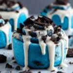 Cookie Monster Cinnamon Rolls are soft, fluffy, and beautifully swirled with vibrant blue dough, packed with a cinnamon-sugar and crushed chocolate sandwich cookie filling. These delightful rolls are topped with a creamy cream cheese glaze, sprinkled with crushed cookies and mini chocolate chips for a fun, indulgent twist on a classic cinnamon roll. Perfect for breakfast or dessert, this recipe combines familiar flavors with playful colors to make every bite irresistible.
