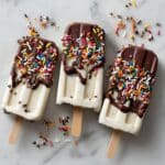 Delicious and creamy homemade fudge popsicles made with simple ingredients like milk, cocoa powder, sugar, and vanilla. Perfect for a refreshing chocolate treat on a hot day.