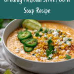 Mexican Street Corn Soup is a flavorful and comforting dish inspired by the popular street food elote. This creamy, slightly spicy soup combines sweet corn with savory broth and a hint of chili powder for a deliciously satisfying meal.