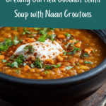 This curried coconut lentil soup is a comforting and flavorful dish, perfect for cozy evenings. Rich with warming spices and creamy coconut milk, it’s served with crispy naan croutons for an irresistible texture contrast.