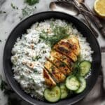 A simple and flavorful one-dish meal featuring tender chicken baked with rice and flavorful broth, topped with creamy tzatziki sauce for a refreshing finish. Perfect for busy weeknights, this dump-and-bake recipe requires minimal prep and delivers comforting Mediterranean-inspired flavors in one easy bake.
