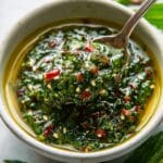 This easy chimichurri sauce recipe is the ultimate guide to creating a vibrant, herby, and zesty condiment perfect for grilled meats, roasted vegetables, or as a flavorful marinade. Made with fresh parsley, oregano, garlic, and a blend of spices, balanced with red wine vinegar and olive oil, this sauce is simple to prepare and customizable to your spice preference.