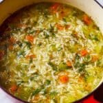 Store leftover soup in an airtight container in the refrigerator for up to 3 days. Reheat gently on the stove over low heat, adding a bit of water or broth if the soup thickens. Orzo can absorb liquid, so stirring occasionally while reheating helps maintain the right consistency.