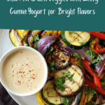 Keywords: Grilled vegetables, Mediterranean appetizer, Greek yoghurt sauce, healthy vegetable platter, vegetarian grill recipe