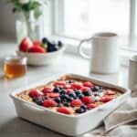This High-Protein Triple Berry Bake is a delicious and nutritious dessert or breakfast option. Combining the natural sweetness of mixed berries with the added boost of protein powder and eggs, it offers a satisfying, wholesome treat that’s perfect for anyone looking to increase their protein intake without sacrificing flavor.
