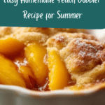 This homemade peach cobbler recipe features fresh peaches baked under a golden, buttery batter. The result is a classic Southern dessert with warm, juicy fruit and a soft, cake-like topping, perfect for enjoying year-round or at summer gatherings.