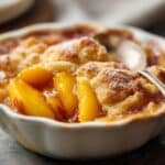 This homemade peach cobbler recipe features fresh peaches baked under a golden, buttery batter. The result is a classic Southern dessert with warm, juicy fruit and a soft, cake-like topping, perfect for enjoying year-round or at summer gatherings.