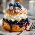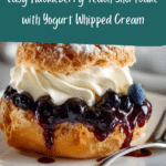 This Huckleberry Peach Shortcake features tender, flaky shortcakes topped with a vibrant huckleberry compote and fluffy yogurt whipped cream, creating a delightful balance of sweet, tangy, and creamy flavors that celebrate fresh summer fruits.