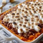 5. Add Marshmallows & Finish: Remove the casserole from the oven and gently spread 1-2 cups of mini marshmallows over the pecan topping. Return the dish to the oven for another 3-5 minutes, baking just long enough for the marshmallows to puff up and become golden brown. Watch closely to avoid burning.