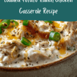 Loaded Potato Ranch Chicken Casserole is a hearty and comforting baked dish featuring tender chicken, creamy potatoes, flavorful ranch seasoning, and melted cheese. Perfect for a family dinner, this casserole combines simple ingredients into a delicious one-pan meal that is easy to prepare and packed with rich, savory flavors.