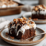 Mississippi Mud Cake is a rich, decadent chocolate dessert featuring a moist cocoa-infused cake base topped with a gooey marshmallow layer and a silky chocolate ganache, finished with toasted pecans and optional coconut for added crunch and flavor. This classic Southern treat combines multiple textures and deep chocolate flavors for an indulgent experience.