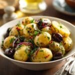 It’s best served fresh and warm, but you can prepare the potatoes and reheat them just before serving for convenience. Adding fresh herbs after reheating will help keep the flavors bright.