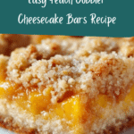 Peach Cobbler Cheesecake Bars are a delightful dessert combining a buttery graham cracker crust, creamy cheesecake filling, and sweet, juicy peaches. Perfectly baked and chilled to set, these bars offer a delicious blend of textures and flavors reminiscent of classic peach cobbler with a rich cheesecake twist.