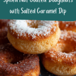 Keywords: hot doughnuts, spiced sugared nut coating, deep-fried doughnuts, salted caramel dipping sauce, cinnamon nutmeg doughnuts, homemade doughnuts