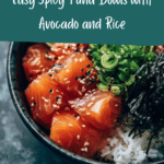 These Spicy Tuna Bowls are a vibrant and flavorful meal featuring tender tuna mixed with a spicy sriracha soy sauce, served over fluffy steamed rice and topped with creamy avocado slices. Perfect for a quick, satisfying, and healthy lunch or dinner.