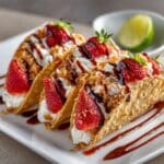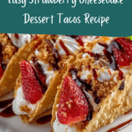 Strawberry Cheesecake Dessert Tacos are a delightful and fun twist on traditional cheesecake. With creamy filling, fresh strawberries, and a crunchy taco shell, they make a perfect treat for any occasion.