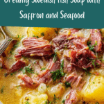 Swedish fish soup with saffron is a creamy, flavorful seafood dish perfect for cozy dinners. Combining cod, salmon, prawns, and mussels with aromatic herbs and a touch of saffron, this soup offers a rich and comforting taste of the sea.
