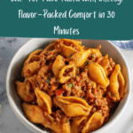 Keywords: taco pasta, ground beef pasta, cheesy taco pasta, weeknight dinner, one pot pasta