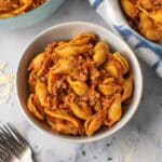 Keywords: taco pasta, ground beef pasta, cheesy taco pasta, weeknight dinner, one pot pasta