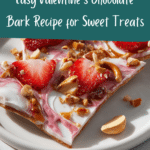 Keywords: Valentine’s Day, chocolate bark, semi-sweet chocolate, white chocolate, candy melts, festive dessert, easy no-bake